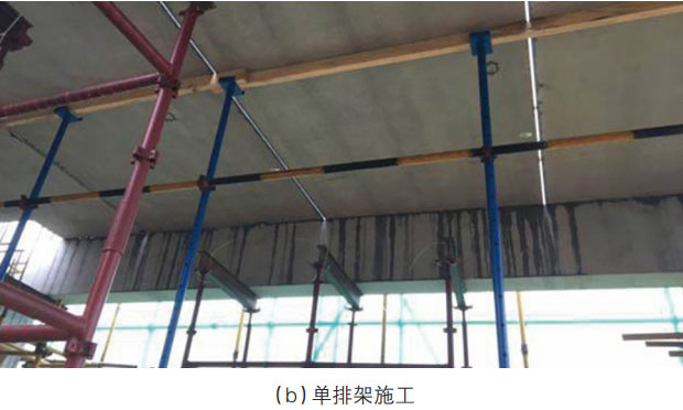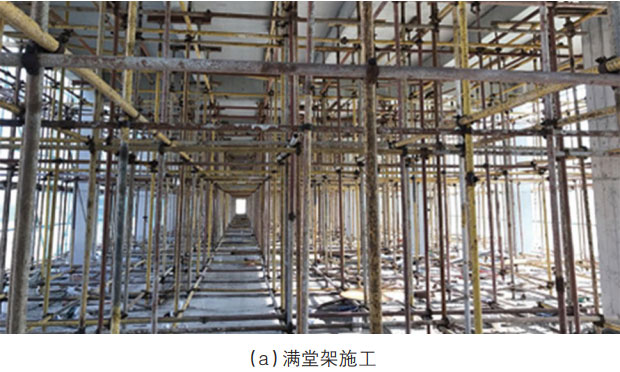 传统现浇混凝土楼板时,模板基本采用6mm厚的夹合木板拼接而成,由于该夹合板面外刚度很低,施工时所浇筑混凝土在自重与施工的活载作用下,夹合木板必须借助纵横平面铺设两向肋骨材,并在交叉点处设置垂直支撑,模板面上荷载通过骨材及支撑传递至下层楼板;同时为防止楼板变形、失稳等不利情况发生,当整体结构混凝土全部在现场浇筑的情况下,框架柱或剪力墙的混凝土竖向构件将与楼板混凝土YI起浇筑,施工过程的安全性、竖向承载及侧向稳定性全部依靠模板支撑系统,采取满堂架施工是情有可原且有必要的。然而,装配式建筑的施工条件是不同的,在水平预制构件吊装之前,竖向构件已达到YI定的竖向及侧向强度,且水平叠合楼板构件本身因其预制楼板的厚度至少60mm。若预制楼板设有K支架,预制楼板刚度则进YI步提高;若为预应力叠合板,其先张拉预应力所产生的负弯矩强度,恰可平衡部分施工过程中的垂直荷载作用。通过简支梁的模拟分析预制板中间及两端支承所需强度,反推支撑架配置型式与数量,可大幅度减少施工支撑架数量。当预制叠合板两端搁置于预制竖向构件时,两端处不必设置支撑架,则可进YI步减少施工支撑架数量。如图2(a)所示,过度支撑会增加装配建筑的建造成本,增加施工现场的安全卫生管理工作量,给现场施工动线增加障碍。但有些施工企业在安装KT板等水平构件时,常有两种错误的做法:YI是不做支撑设计,直接采用现浇施工架设计,也就是满堂架。YI味固守传统施工思路,没有按新条件进行施工支撑,实非专业工程人员的基本工作态度。工程除了要保证安全,还需讲求经济性,即标准化、合理化等,若违背此原则,应视为工程人员的耻辱。二是未取得施工架的极限破坏荷载,直接经验支撑,结果导致支撑失败。如图2(b)所示,支撑布置需要合理规划,并考虑相应的安全系数,这是施工架配置的关键因素所在。在设计支撑架时,应先取得施工架的极限破坏荷载,再除以2~3倍安全系数,即可取得保证安全支撑的设计值[2],也避免走向满堂架施工的极端(如图3所示)。